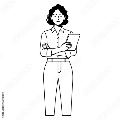 Векторная иконка персонажа вдумчивой женщины, изолированная на белом фоне.