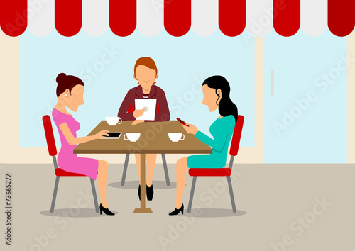 Три девушки делают селфи-фото. Изолированная концепция дизайна мультфильма на белом фоне. Векторный шаблон дизайна веб-сайта. Иллюстрация концепции сайта целевой страницы.