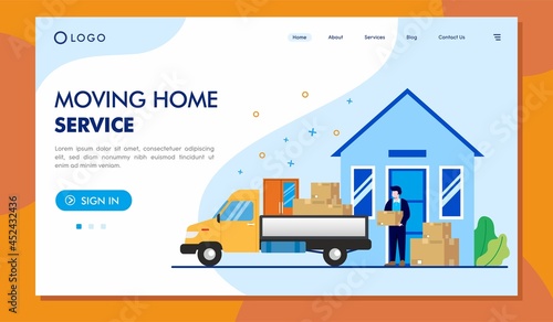 Дизайн целевой страницы для транспортировки древесины, набор шаблонов баннеров веб-сайта, плоская векторная иллюстрация. Лесопогрузчик загружает бревна на грузовик. Лесное хозяйство, деревообработка, древесина или пиломатериалы промышленности.
