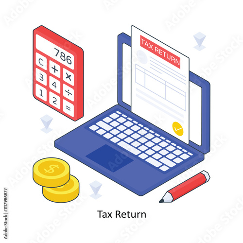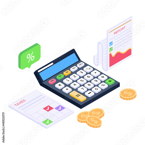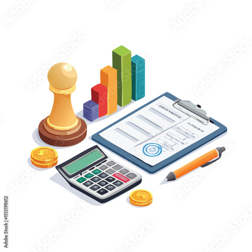 Время - это деньги. Бизнесмен работает на ноутбуке рядом с песочными часами, контрольным списком, календарем, деньгами, калькулятором, плоской векторной изометрической иллюстрацией. Концепция тайм-менеджмента.