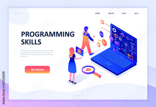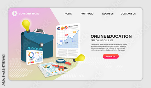 Шаблон веб-сайта целевой страницы для управления временем. Векторный изометрический ноутбук с часами, графиками и человеком, планирующим свой день, чтобы управлять своим временем и достигать успеха.