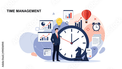 Шаблон веб-сайта Time vector, дизайн веб-страницы и целевой страницы для разработки веб-сайтов и мобильных сайтов. Эффективное управление временем, концепция дедлайна.