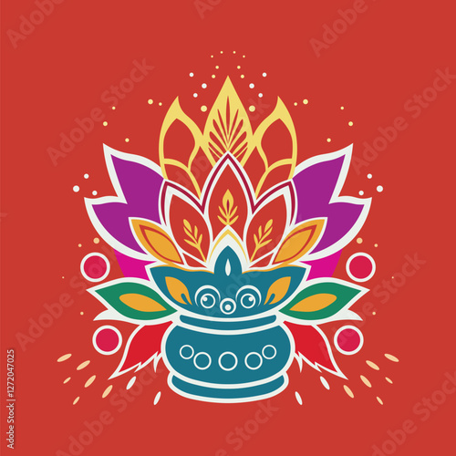Банка с краской и кистью с вырезанной из бумаги красочной векторной иллюстрацией всплеска. Макет контейнера на демонстрационном подиуме с многослойной текстурой цветовых брызг. Шаблон объявления