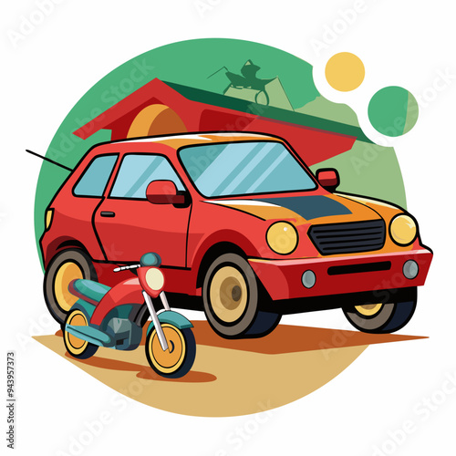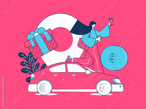 Автосервис, автомастерская, гараж. Автомеханики устанавливают новые и меняют старые шины, векторная иллюстрация дизайна в плоском стиле. Замена шин и автосервисы.