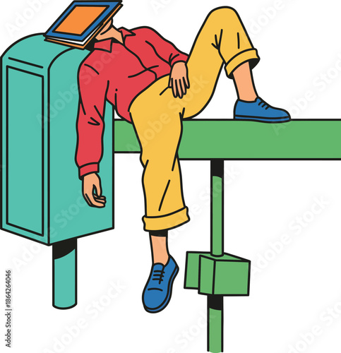 Усталый врач, сидящий на стуле, векторный значок, изолированный на белом фоне