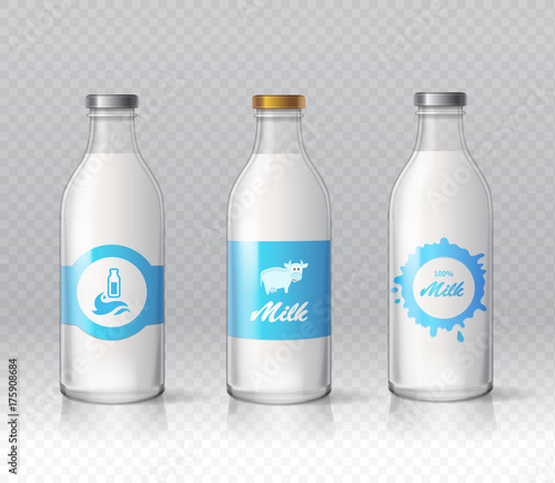 Набор макетов упаковки флакона для чистки унитаза. Векторная реалистичная иллюстрация белой пустой пластиковой бутылки для жидкого чистящего средства и бутылки с этикеткой, изолированной на прозрачном фоне.