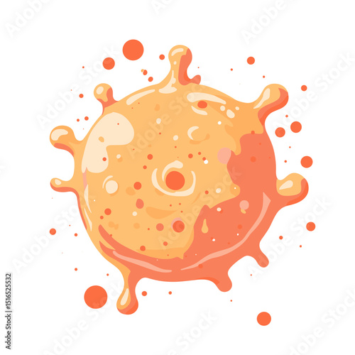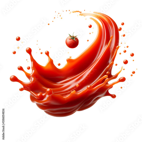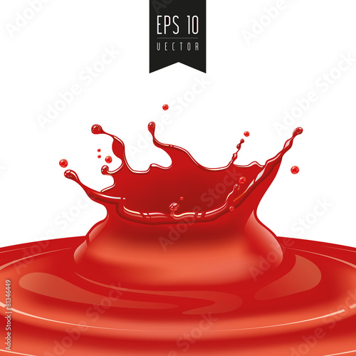 Векторная иконка с брызгами томатного сока. Элемент дизайна упаковки, выделенный на белом фоне