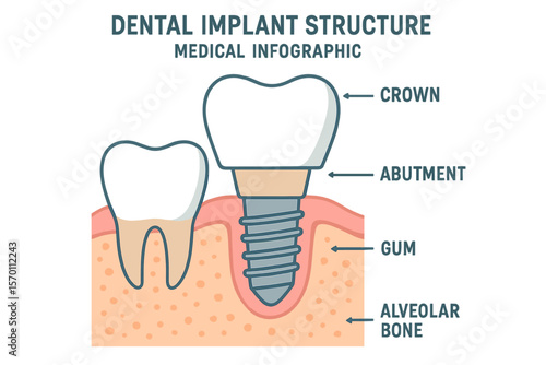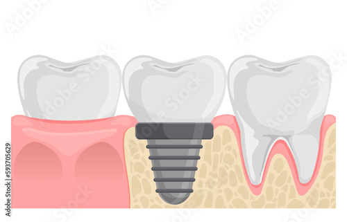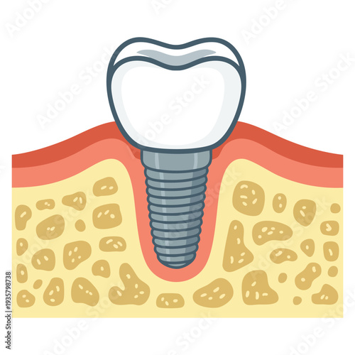 Векторный значок установки зубного имплантата, выделенный на белом фоне