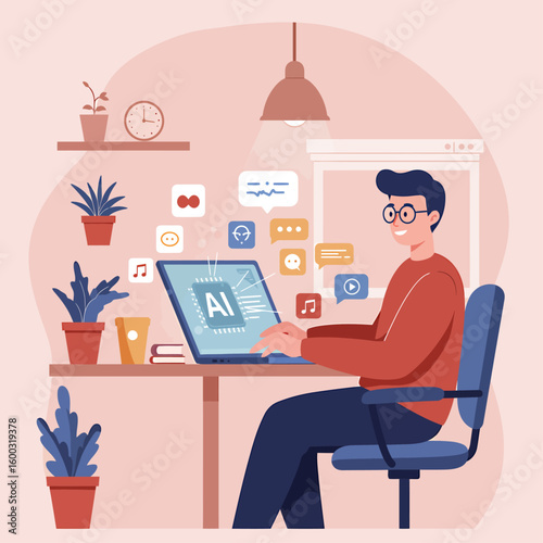 Векторная иллюстрация туристического мужчины, покупающего сувениры в сувенирном магазине. Дизайн в плоском стиле.