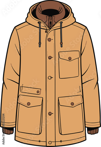 Векторный значок туристического теплого пальто, изолированный на белом фоне