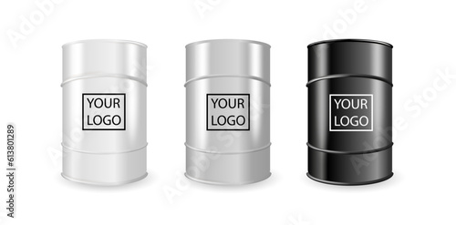 Мусорный бак для городских улиц и парков. Металлические банки для мусора и отходов. Векторный набор в 3D реалистичном стиле. Мусорное ведро, изолированное на белом фоне. Городской дизайн для общественных тротуаров.