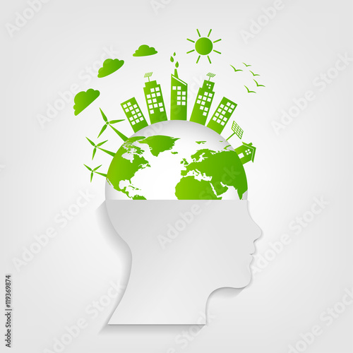 Мусорное ведро с пластиковым мусором и зеленым знаком утилизации, векторная иллюстрация в стиле бумажного искусства. Повторное использование отходов и их переработка. Сохраняйте окружающую среду.