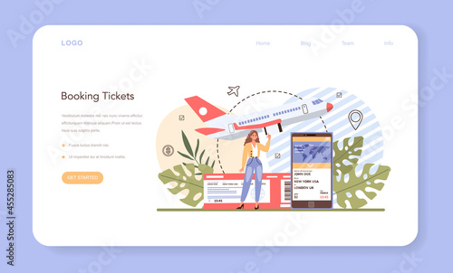 Концепция путешествий и отдыха. Туристы с дорожным чемоданом. Летние каникулы. Векторный шаблон дизайна веб-сайта. Иллюстрация сайта целевой страницы.