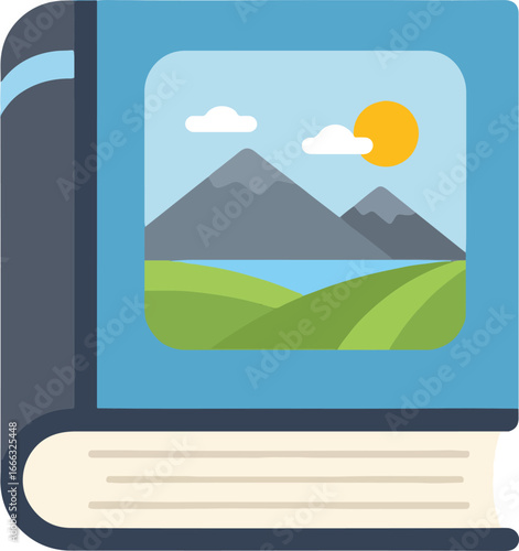 Блог о путешествиях с векторной иконкой статей, фото и видео контента. Креативный туристический канал на цифровом планшетном компьютере, выделенный на белом фоне