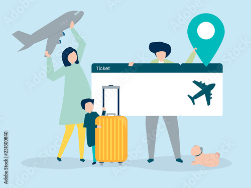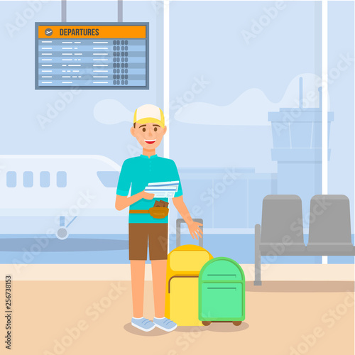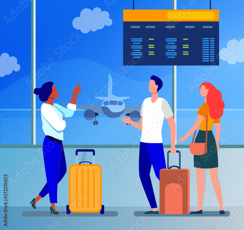 Путешествующая пара вид сзади, плоская векторная иллюстрация. мужчина и женщина с дорожной сумкой держатся за руки. Романтический отпуск, летние каникулы, медовый месяц, путешествия по миру.