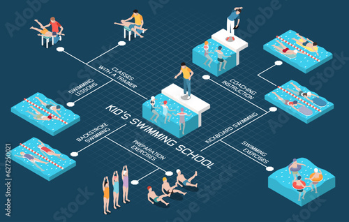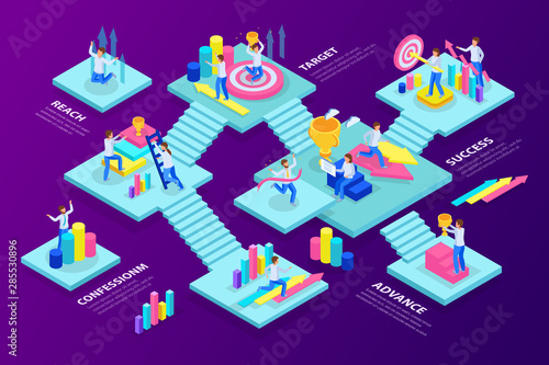 Изометрическая инфографика путешествия. Векторная иллюстрация. Планирование летней поездки. Онлайн-бронирование билетов на отель, рейс, автобус или поезд. Пляжный отдых, путешествие, дорожная поездка, кемпинг. Индустрия путешествий и туриндустрии.