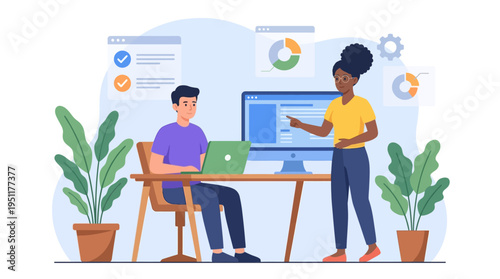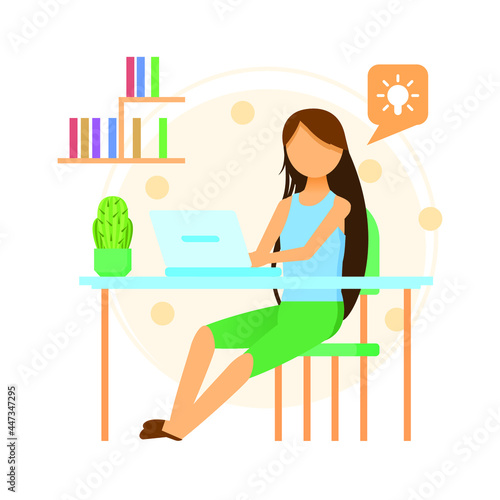 Молодая женщина, использующая ноутбук для онлайн-бронирования авиабилетов, бронирования гостиничного номера, поиска туристического агентства, векторная плоская иллюстрация. Планирование путешествий, концепция летних каникул для страницы веб-сайта и т.д.