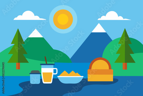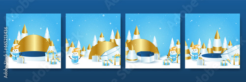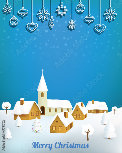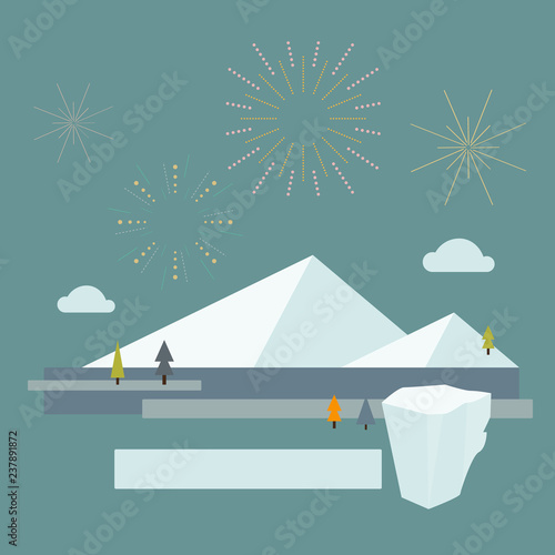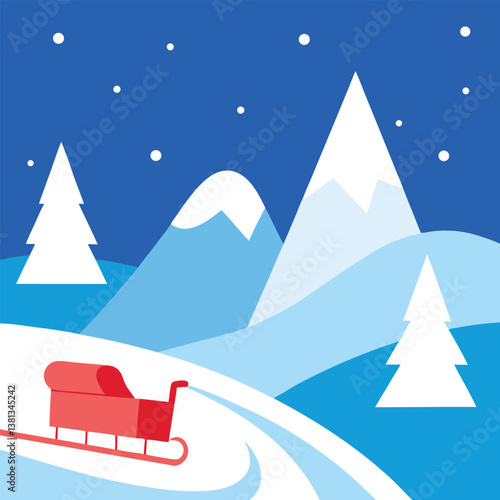 Проездные билеты в коробке, украшенная рождественская елка с шарами, пейзаж зимнего ночного леса, векторная иллюстрация в стиле бумажного искусства. Рождественский тур, зимние каникулы.