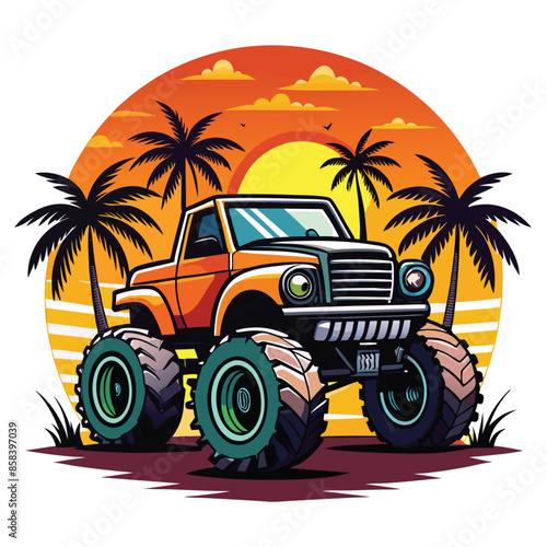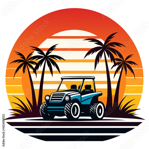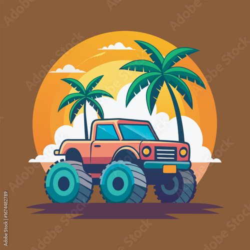 Векторная иллюстрация молодого человека, едущего на квадроцикле. Элемент дизайна концептуальной квартиры в стиле поездки в Египет.