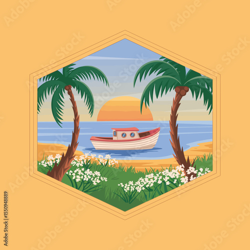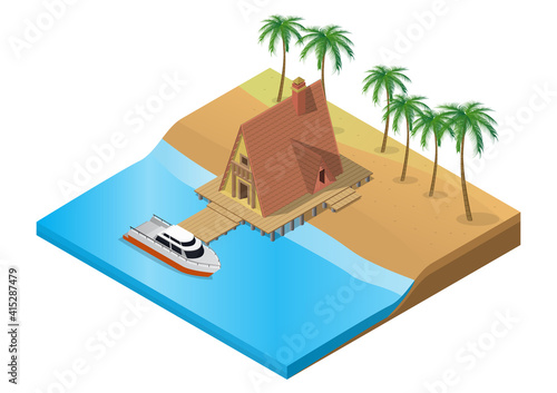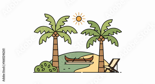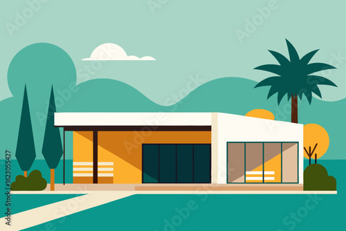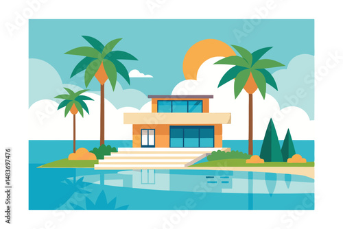 Векторная иллюстрация женщины, загорающей в бассейне курорта. Элемент дизайна концептуальной квартиры в стиле поездки в Египет.