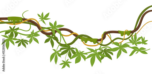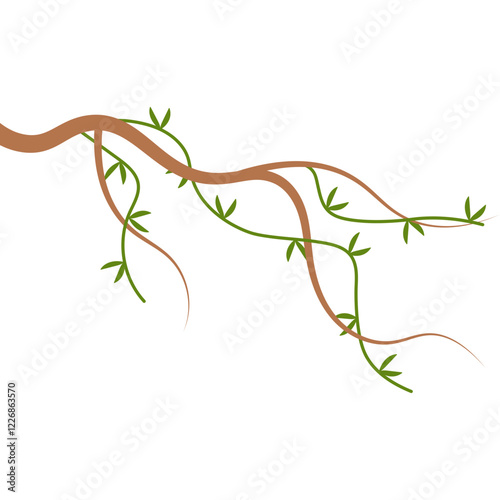 Ветка тропического дерева с векторной иконкой листьев, изолированной на белом фоне.