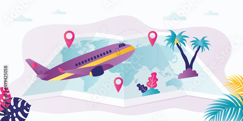 Векторный шаблон веб-сайта "Тропические каникулы", дизайн веб-страницы и целевой страницы для разработки веб-сайтов и мобильных сайтов. Летние пляжные каникулы, многослойная вырезка из бумаги.