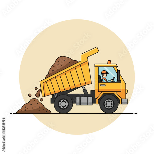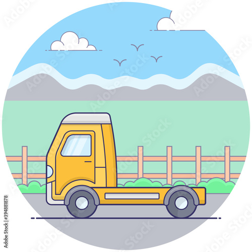 Грузовик, доставляющий семена подсолнечника, векторная иконка, изолированная на белом фоне