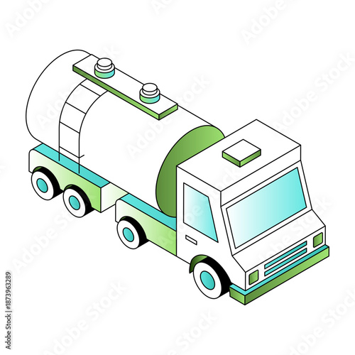 Грузовик для переработки отходов в векторе. Изометрическая машина для вывоза мусора. Зеленый городской мусорный контейнер с транспортным средством-контейнером для мусора, выделенным на белом фоне
