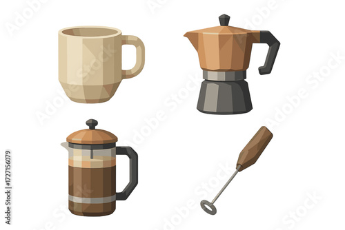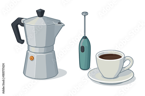 Турецкий кофейный сервиз. Векторная реалистичная иллюстрация, изолированная на белом фоне.