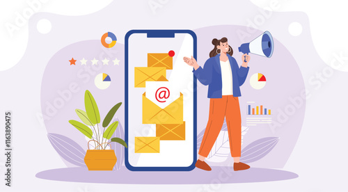 Телевизионная викторина с ведущим и двумя участниками, умные мальчик и девочка отвечают на вопросы, плоская векторная иллюстрация. Участники, играющие в викторину-игровое шоу по телевидению. Счастливая девушка, выигравшая соревнование.