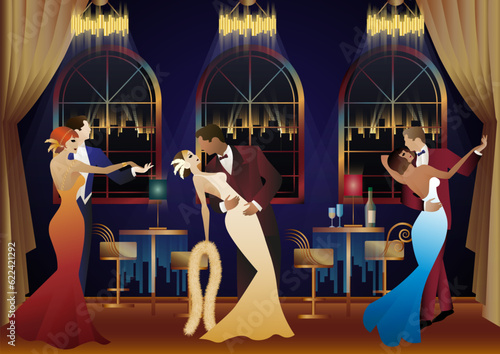 Шоу талантов. Певица, молодая женщина, поющая перед живой аудиторией и жюри, плоская векторная иллюстрация. Участница телевизионного шоу талантов выступает на театральной сцене с микрофоном. Телевизионный конкурс.