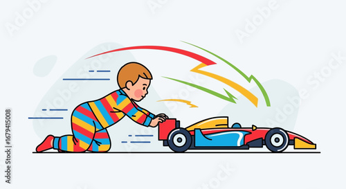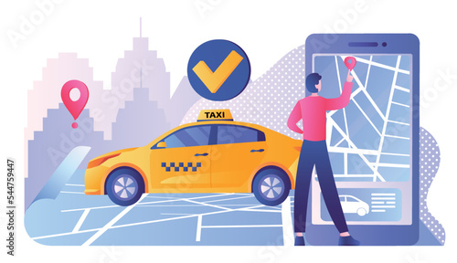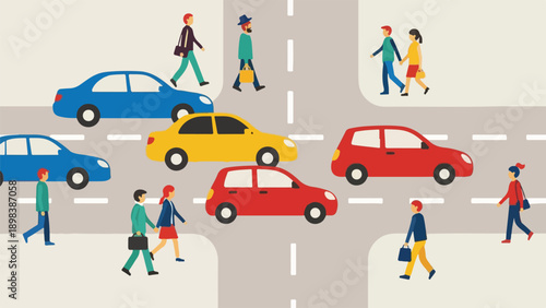 Векторная иллюстрация дорожно-транспортного происшествия с участием двух автомобилей. Расстроенные водители мужского пола смотрят на поврежденный транспорт, разбитые транспортные средства пытаются решить проблему