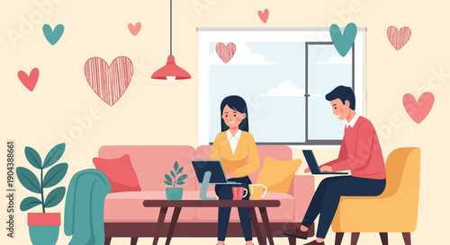 Две счастливые девушки сидят за столом и пьют вино, плоская векторная иллюстрация. Молодые женщины, лучшие подруги, разговаривающие, смеющиеся. Встреча в кафе, ресторане, празднование дня рождения. Женская дружба.