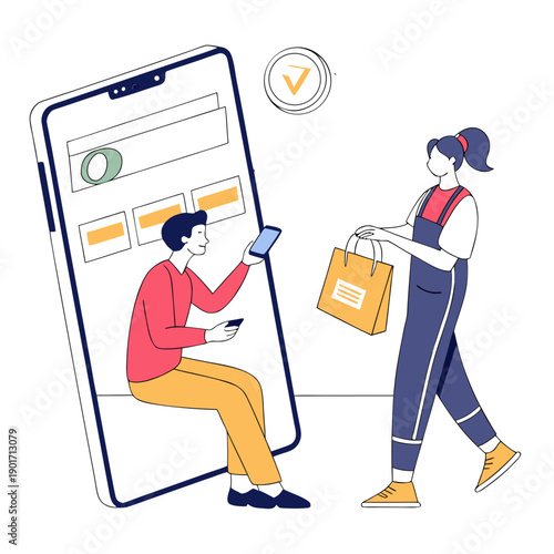 Два грузчика, несущие шкаф, плоская векторная иллюстрация. Перемещение. Услуги транспортной компании. Доставка мебели.