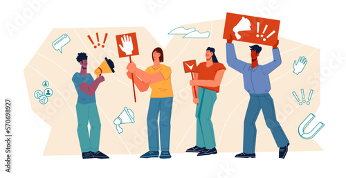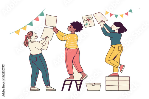 Две сильные разнообразные девушки с поднятым кулаком и знаком женского пола, плоская векторная иллюстрация. День равенства женщин, расширение прав и возможностей женщин, сила девочек, концепция феминизма.