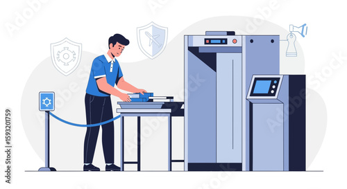 Типографские услуги, векторная иллюстрация. Огромный принтер с бумагой, микросимволами, офсетными печатными красками или красками. Полиграфия, типография, концепция типографии для веб-баннера, страницы сайта и т.д.