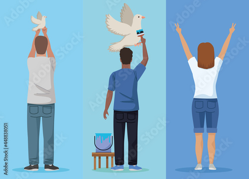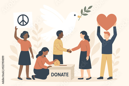 Несчастная пара мужчин и женщин, конфликтующая, стоя отдельно из-за разбитого сердца на заднем плане. Развод, кризис и плохие отношения в семейной векторной иллюстрации