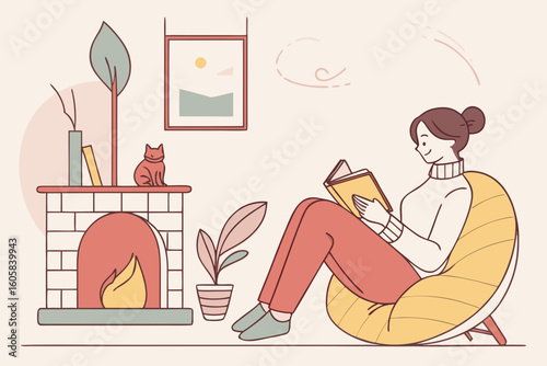 Молодая женщина, лежащая на кровати в одиночестве, держащая смартфон и думающая о своем парне, плоская векторная иллюстрация. Несчастная девушка и ее любимый кот, спящий у ее ног. Интерьер спальни. Одиночество, развод.