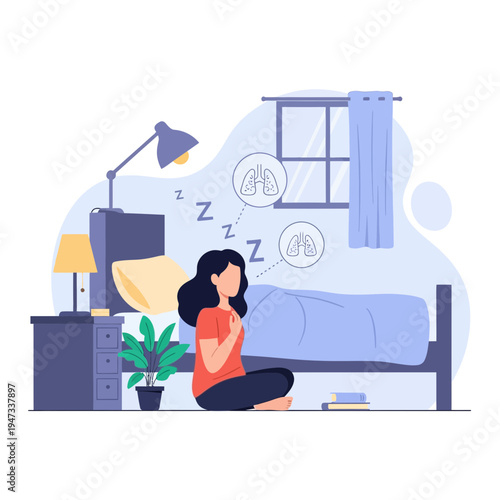 Молодая женщина ест нездоровую пищу и пьет вино, сидя на диване и смотря телевизор, векторная плоская иллюстрация. Фаст-фуд, нездоровое питание и образ жизни.