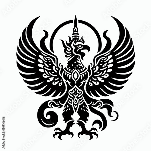 Единорог, силуэт волшебного и мифического сказочного персонажа, векторная иллюстрация. Сказочная композиция в стиле paper art craft.