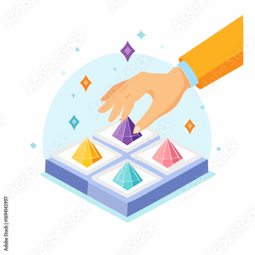 Лошадь-единорог и деловые люди, создающие слово для стартапа, пазлы, плоская векторная изометрическая иллюстрация. Маркетинг стартапа Unicorn, успешная бизнес-стратегия.
