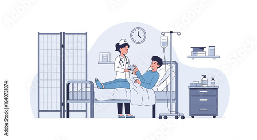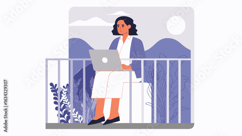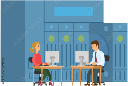 Нелюбимая работа и вектор эмоционального выгорания. Мужчина-рабочий, сидящий за письменным столом перед портативным компьютером на иллюстрации в клетке
