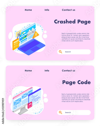 Векторный шаблон веб-сайта, дизайн целевой страницы для разработки веб-сайтов и мобильных сайтов. Загружайте файлы и редактируйте файлы, веб-баннеры, плоская изометрическая иллюстрация.