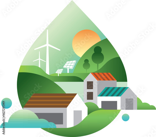 Инфографика круговых диаграмм урбанизации. Векторная иллюстрация в стиле бумажного искусства. Круговая диаграмма, представляющая увеличение уровня урбанизации и уменьшение уровня лесных площадей.