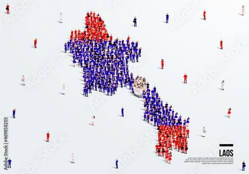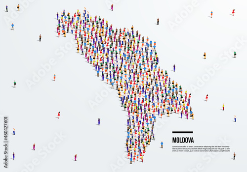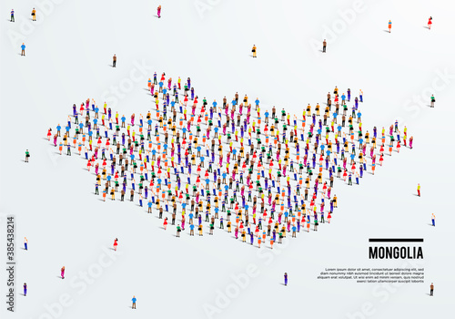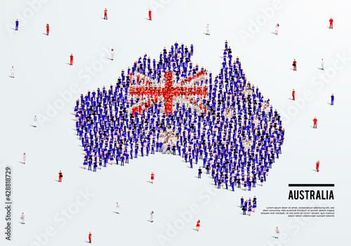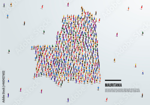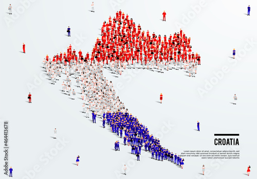 Карта США, составленная из множества людей, в форме большой толпы. Группа людей остается в формировании карты страны США. Иммиграция, выборы, концепция мультикультурного разнообразия населения. Векторная изометрическая иллюстрация.