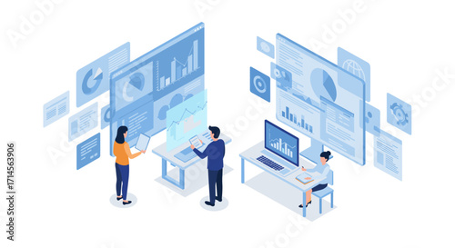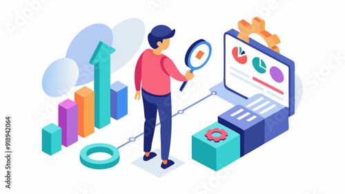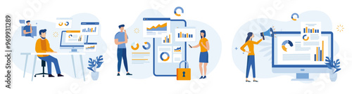 Используйте дизайн целевой страницы данных, набор шаблонов баннеров веб-сайта, плоскую векторную иллюстрацию. Бизнесмен, анализирующий данные и информационные панели на мобильном телефоне. Мобильное приложение бизнес-аналитики, финансовый отчет.