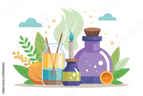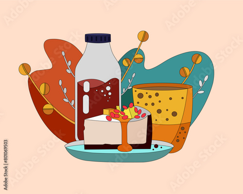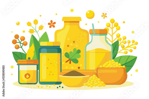 Иллюстрация дизайна в векторном плоском стиле полезных жиров. Авокадо, растительное масло, темный шоколад, миндаль, фисташковое и арахисовое масло. Продукты со здоровым составом жиров для веб-баннера, страницы веб-сайта и т.д.