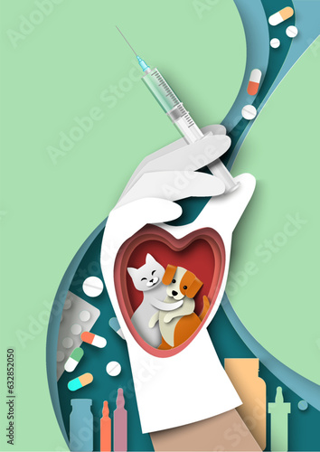 Векторный плакат о вакцинации детей для укрепления иммунитета. Иллюстрация здравоохранения, медикаментозного лечения, профилактической иммунизации и педиатрии с врачом в перчатке, держащим шприц