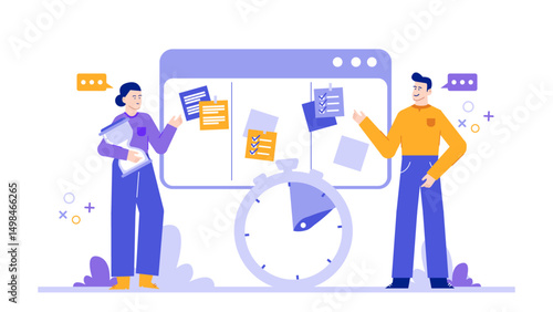 Шаблон веб-баннера вакцинации, векторная иллюстрация. Огромный календарь, микроскоп, вакцина, шприц и крошечные персонажи доктор, пациент. Концепция медицины и здравоохранения для веб-баннера, страницы веб-сайта и т.д
