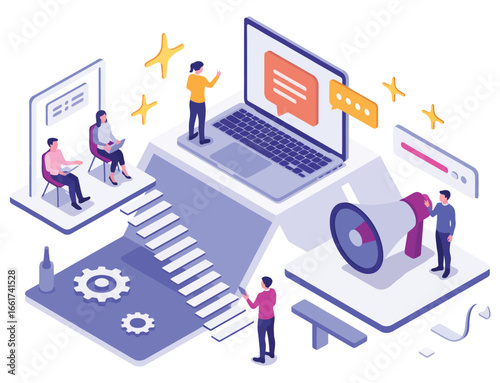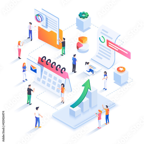 Векторная изометрическая иллюстрация концепции reserch вакцины. Блок-схема вакцинации против Covid с пиктограммами, представляющими этапы разработки вакцины с использованием лабораторного оборудования и процесса вакцинации.
